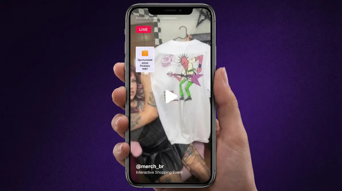 Utilizamos as ferramentas nativas de compras do TikTok e Instagram. Os produtos apareciam na tela durante a live e podiam ser comprados com poucos cliques, sem interromper a visualização do conteúdo.